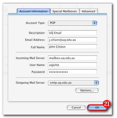 | 13)Click the double-arrows next to 'Outgoing Mail Server', and |